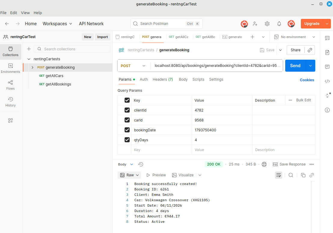 | 22 | 23/10/2025 | - Project: rentingCar-Boot: (1) UML, Car & Client object (2) UI: no UI, just JUnit tests (3) Repository: JPA & H2 DB (4) (5) GenerateBooking - Implement feature: model and populate, checkAvailability, generateBooking, update Car Map ++ Orchestrator: GenerateBooking ++ testUnixTimestampAvailability_Fail ++ formatAvailabilityRanges - PRA#01, PRA#02, PRA#03: MF01, MF02, MF03 - |