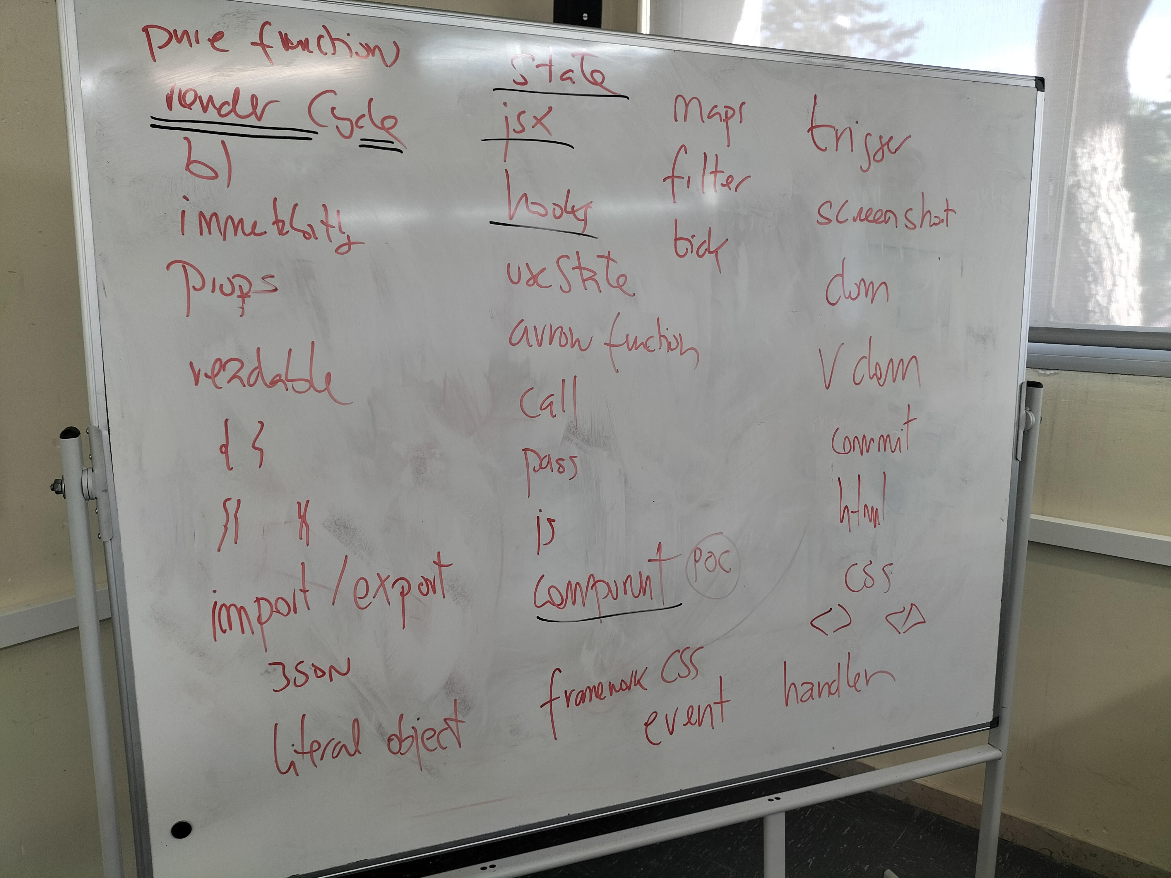| 29 | 11/11//2025 | - React.dev: Hooks (1) State management (2) Flow between render html and business logc and data (3) Understand the render cycle (4) Adding interactivity (5) State as snapshot: immutability - Improving the React definiton: render Cycle, state. POC - Handlers: passing vs. calling |