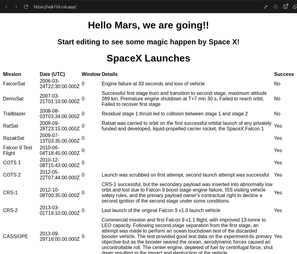 - Repo rentingCar-Boot: eb123de - JS EC6: destructuring - React: API Rest axios - useEffect - Vaadin Endpoints - spaceX endpoint launches - spaceX docs launches - spaceX codesandbox launches ![]() |