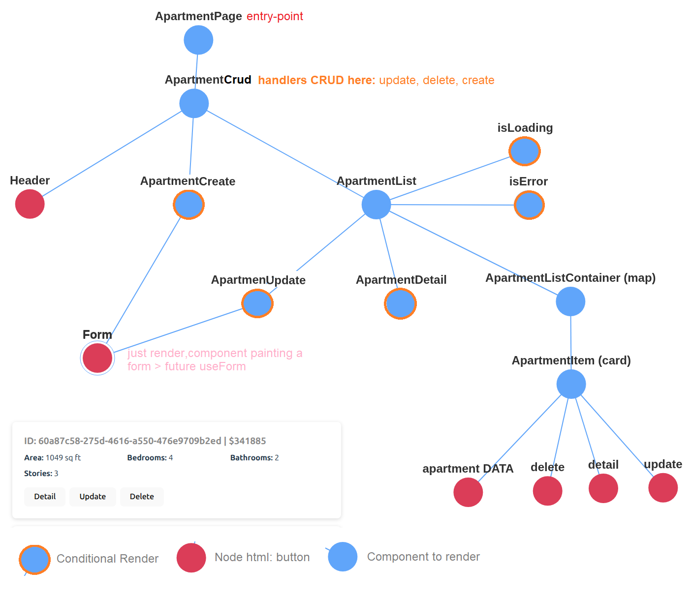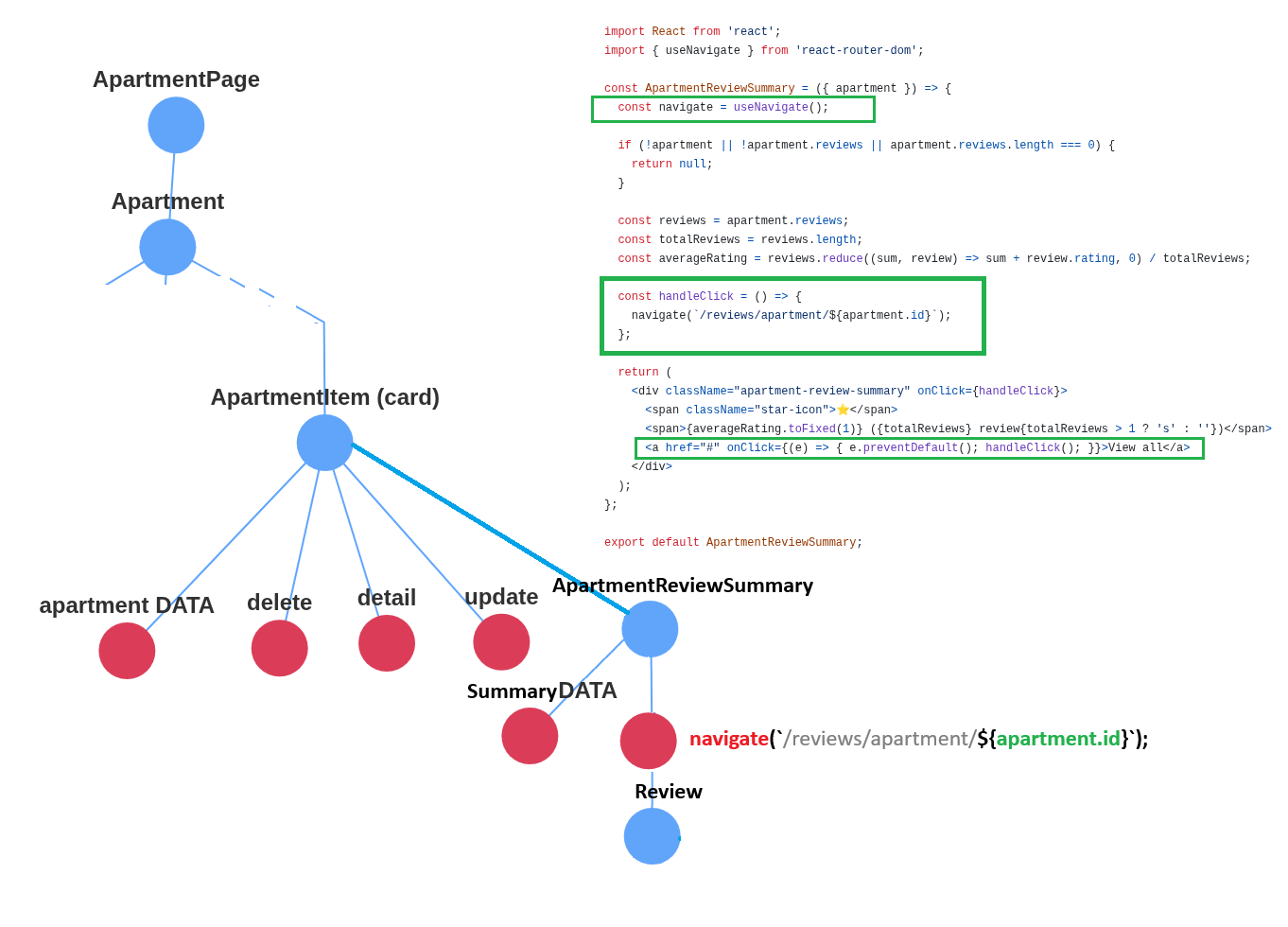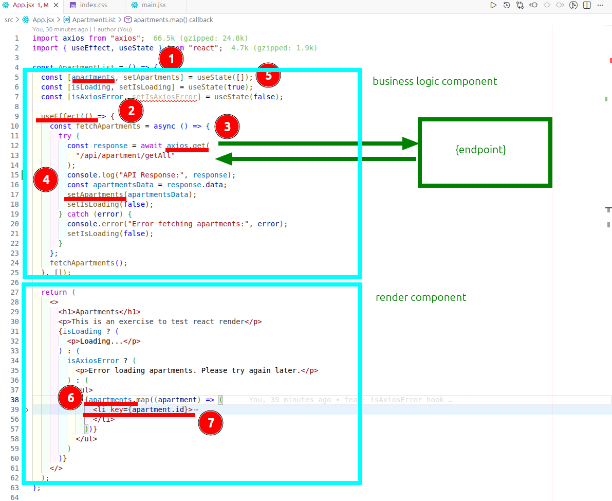 - ApartmentPredictor-React: 0548b4eb - Describing the UI - Passing Props - React, immutable? - CodeSandbox: Gregorio - Gregorio render - Gregorio Repo GH - React Principles - React is JSX - What is props - React vs Java — key paradigm differences (high level) |