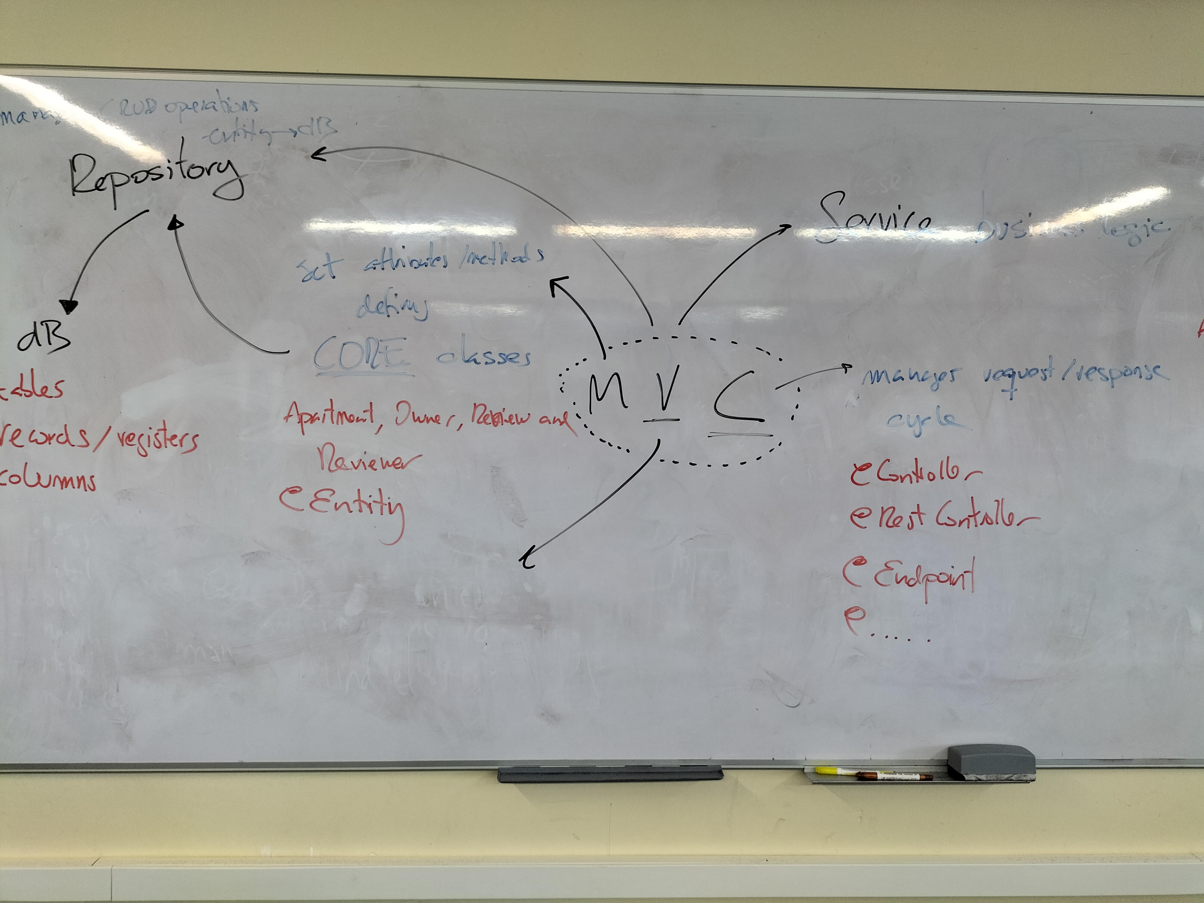 | 04 | 04/12/25 | - (0) Project structure: pom.xml & Maven dependencies (1) Test JUnit Apartment and Review (2) Service: CRUD operations (3) Create Reviewer (4) UML: inherence & composition - Git: (1) Intro: time, space and role/user (2) master/branch, local/remote, HEAD/head (3) gh: gh auth login ++ Mermaid Diagrams ++ What is planning? Matching mental energies ++ MVC: intro ++ What is service, what is repository, what is test, what is db, what is controller |